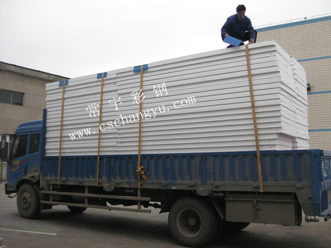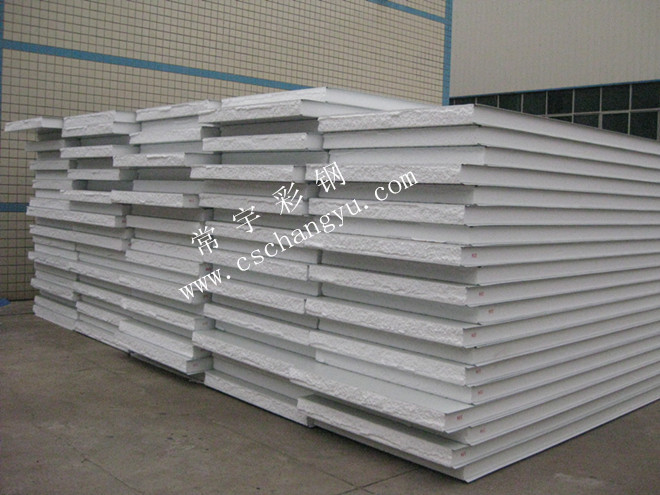 彩鋼夾芯板是由彩色鋼板作表層,閉孔自熄型聚苯乙烯泡沫做芯板,通過(guò)上海希明全自動(dòng)化連接成型機(jī)將彩色鋼板成型后,用高強(qiáng)度粘合劑粘合而成的一種高效新型復(fù)合建筑材料。常采用企口插入式,它具有安裝方便、省時(shí)、省材,平整度好,強(qiáng)度高等優(yōu)點(diǎn),特別適用于吊頂、隔斷系統(tǒng)。 彩鋼夾芯板冷庫(kù)恒溫常用10公分1150型企口板,雙面貼膜,密度18kg/3.。長(zhǎng)度根據(jù)要求生產(chǎn)。
