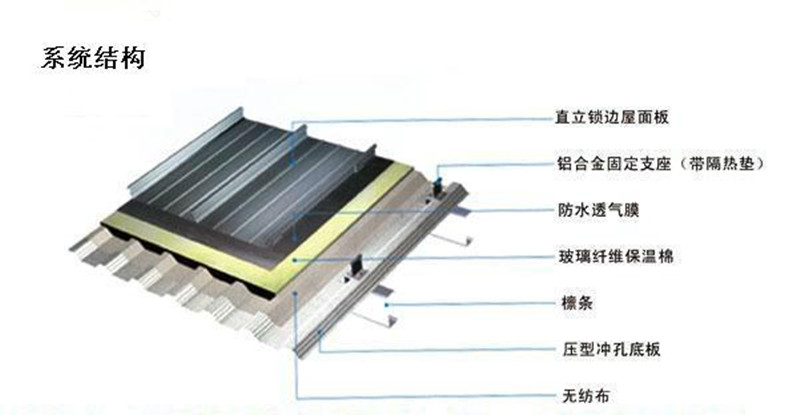 直立鎖邊屋面系統(tǒng)的固定座下裝上斷冷橋的隔熱墊,有效防止保溫屋面的冷橋現(xiàn)象,杜絕冷凝水的形成。且能使能源更有效率地利用,達到節(jié)能的效果。